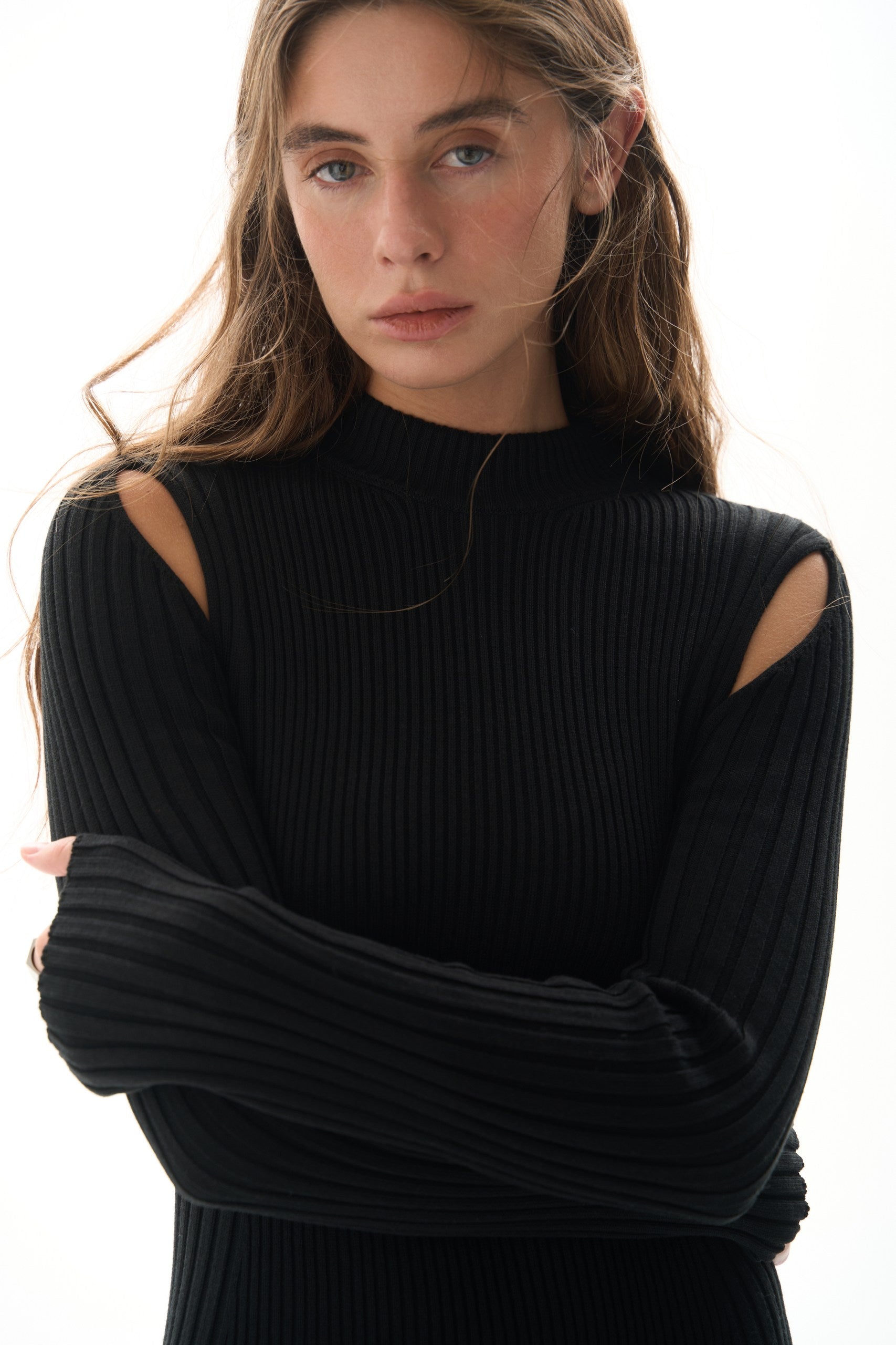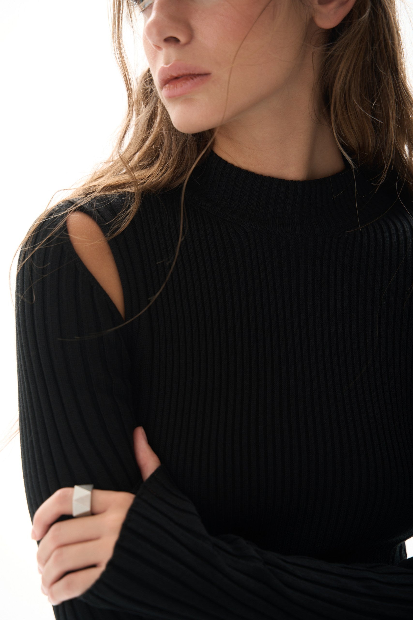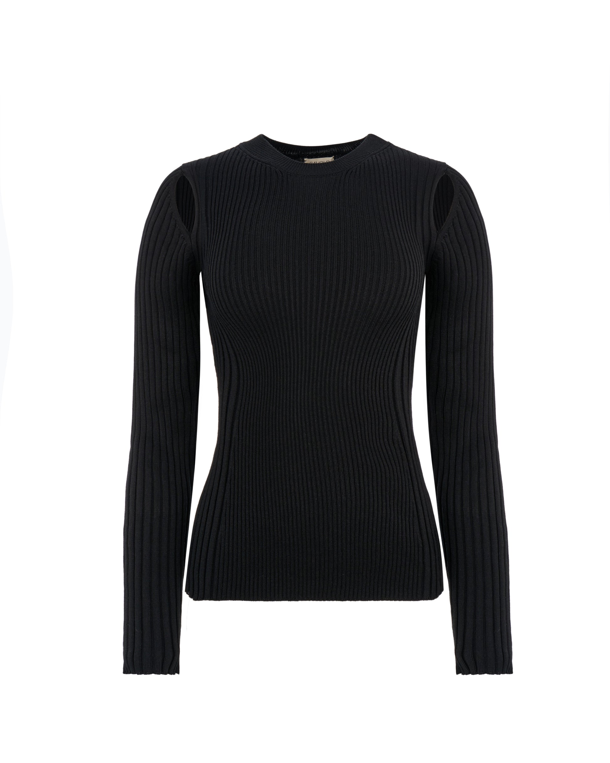 Лонгслів з акцентними розрізами на рукавах, силуетного крою