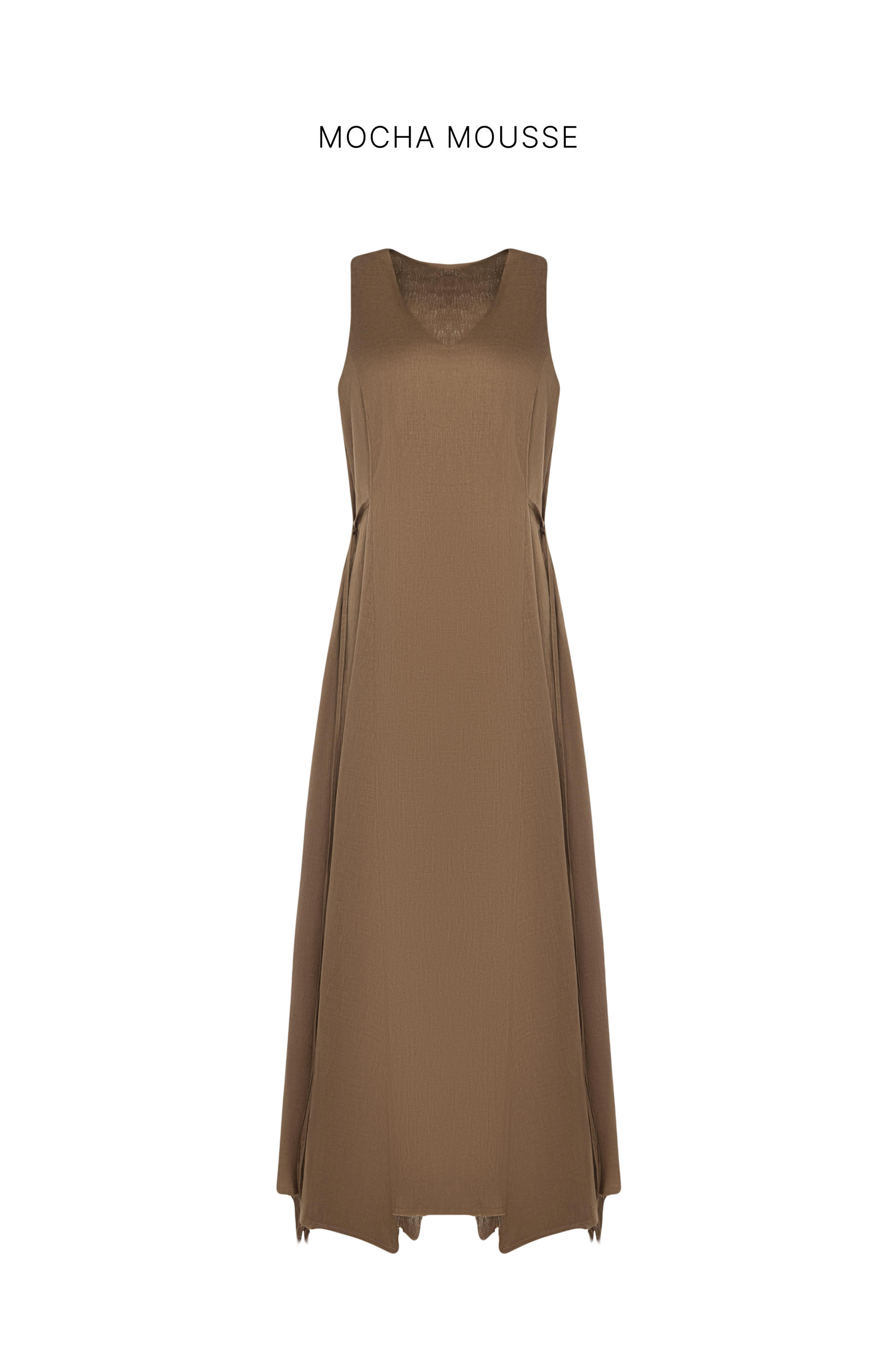 Сукня GAIA виконана з преміального італійського полірованого льону. Доступна в трьох кольорах: Dark Chocolate, Mocha Mousse, Cypress.
