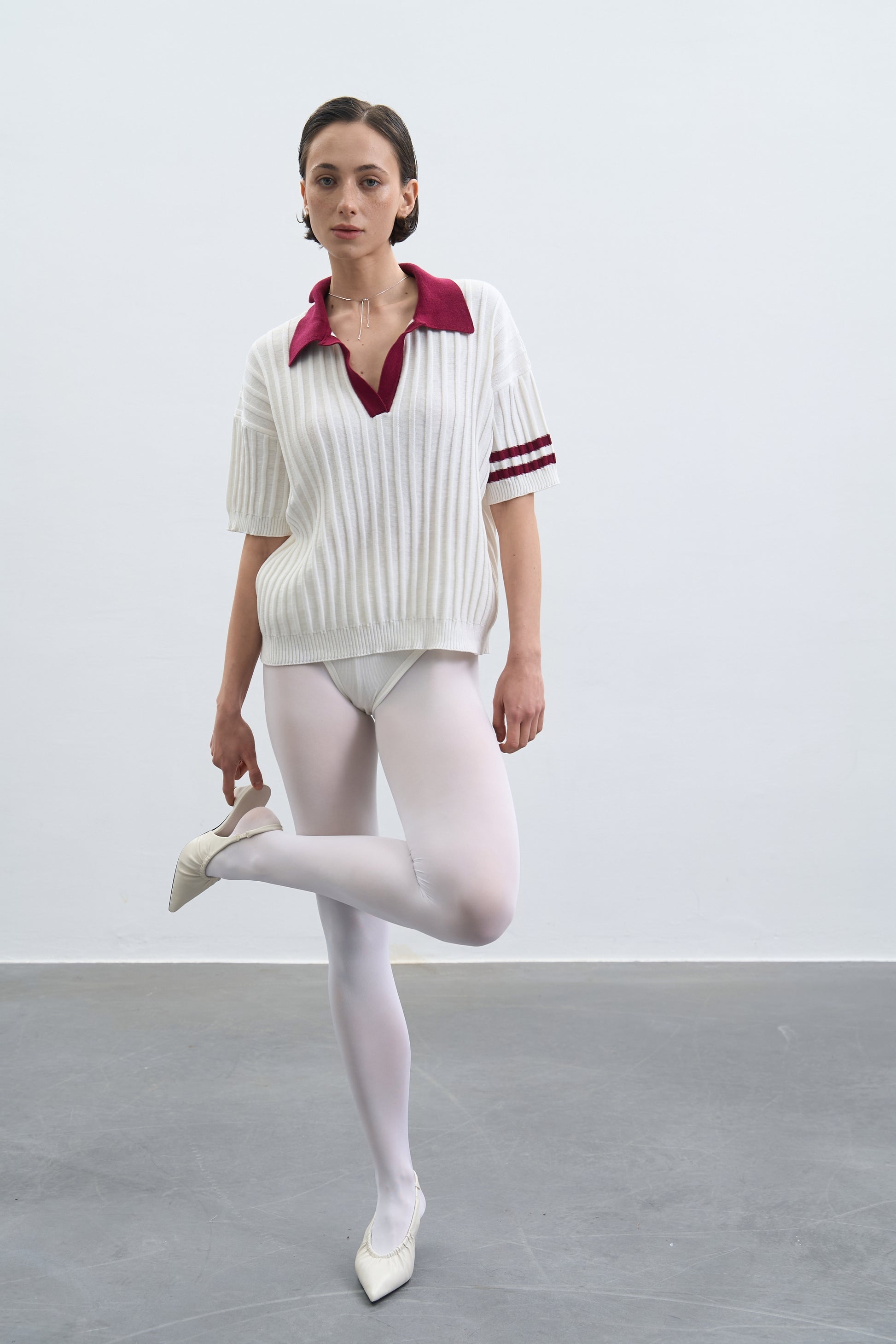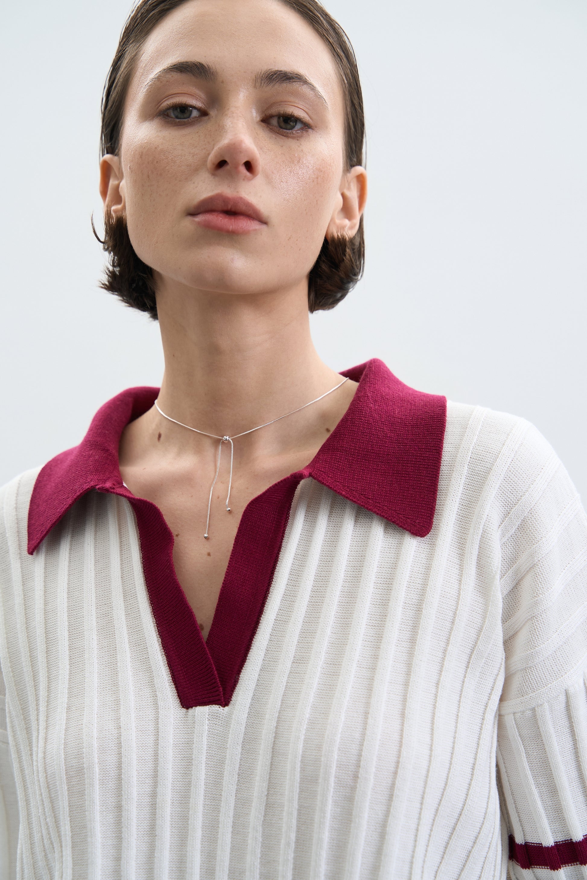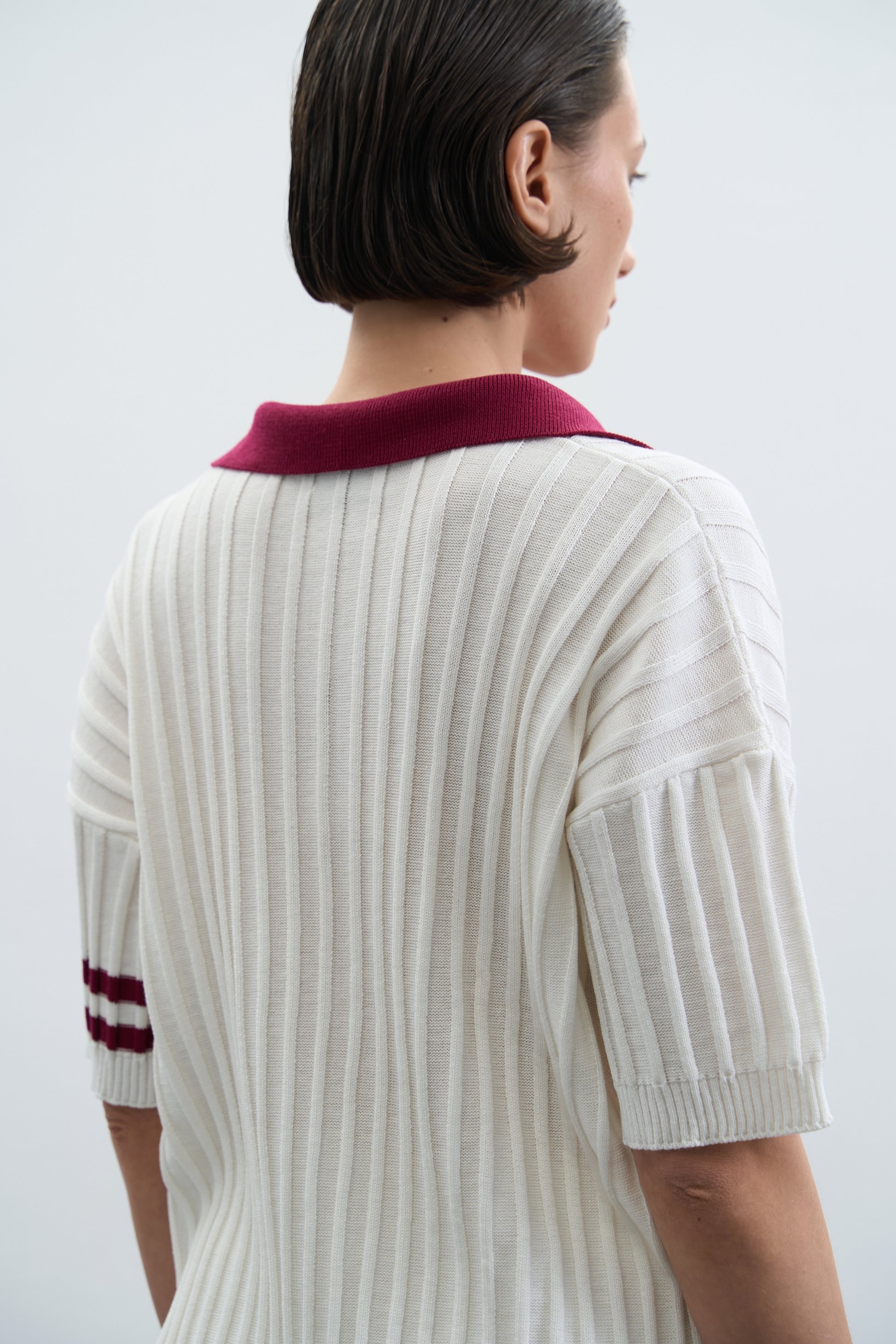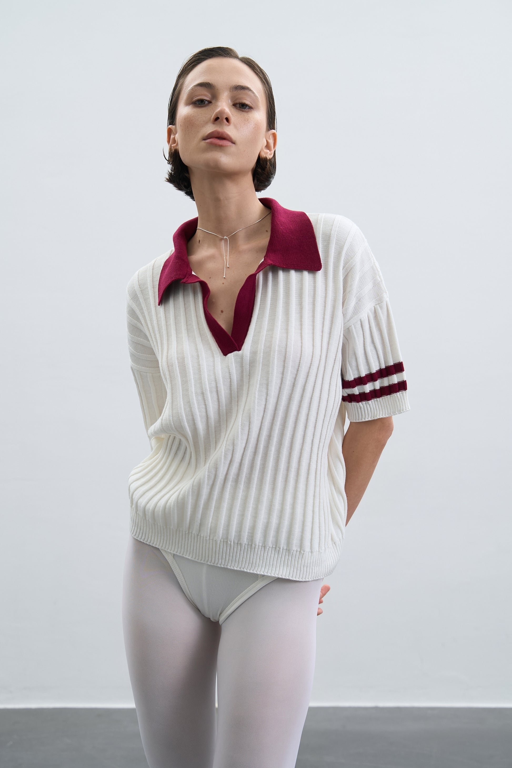 Поло трикотажне вільного крою з акцентним комірцем та смужками на рукаві