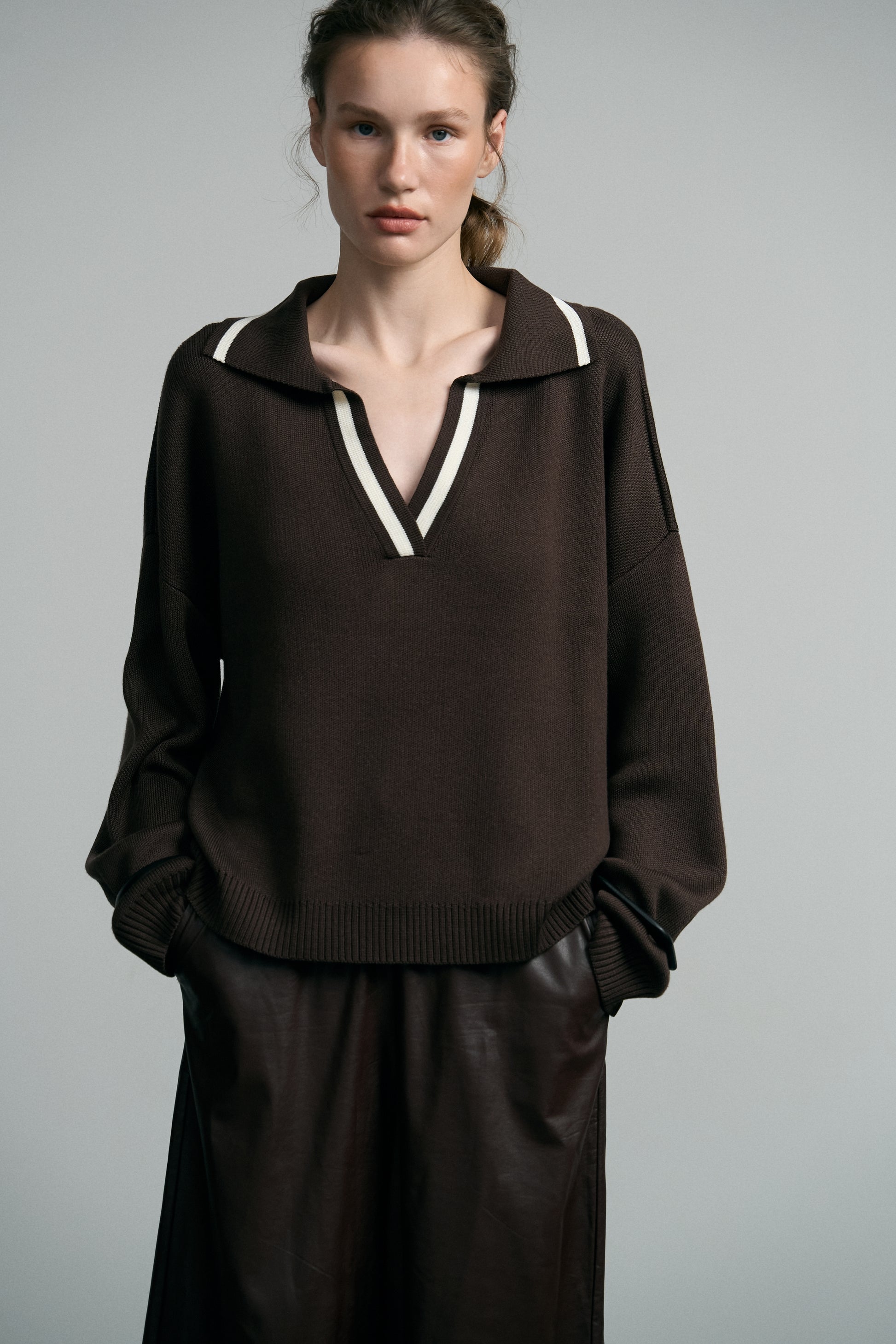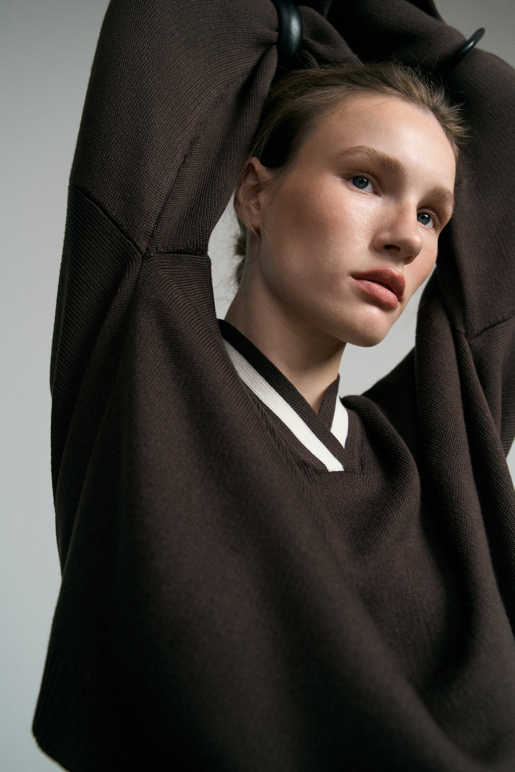 Поло вільного крою з мʼякими спущеними плечима та прямим силуетом. Виготовлений з приємної на дотик віскозної пряжі, що забезпечує комфорт та тепло.
