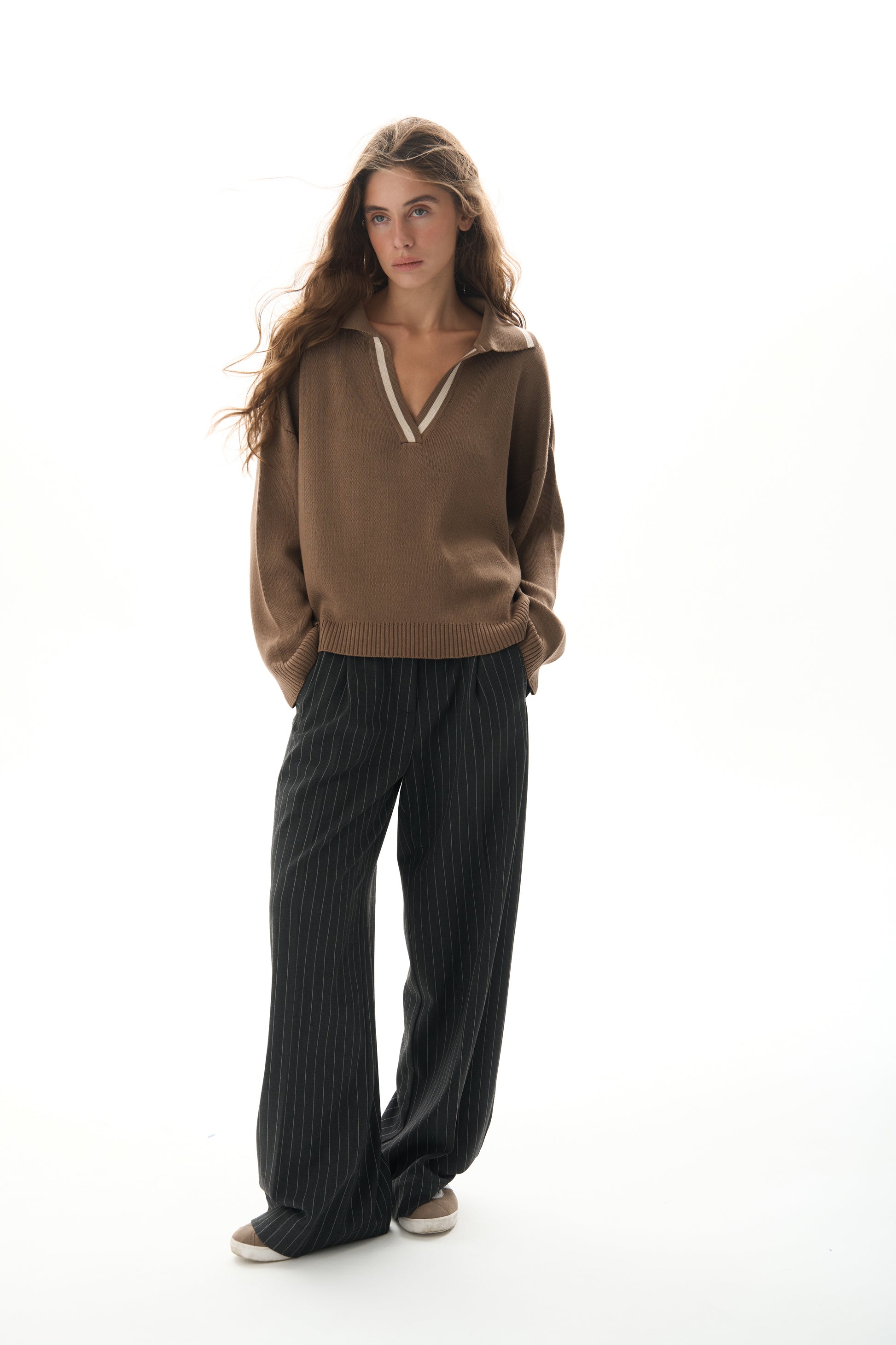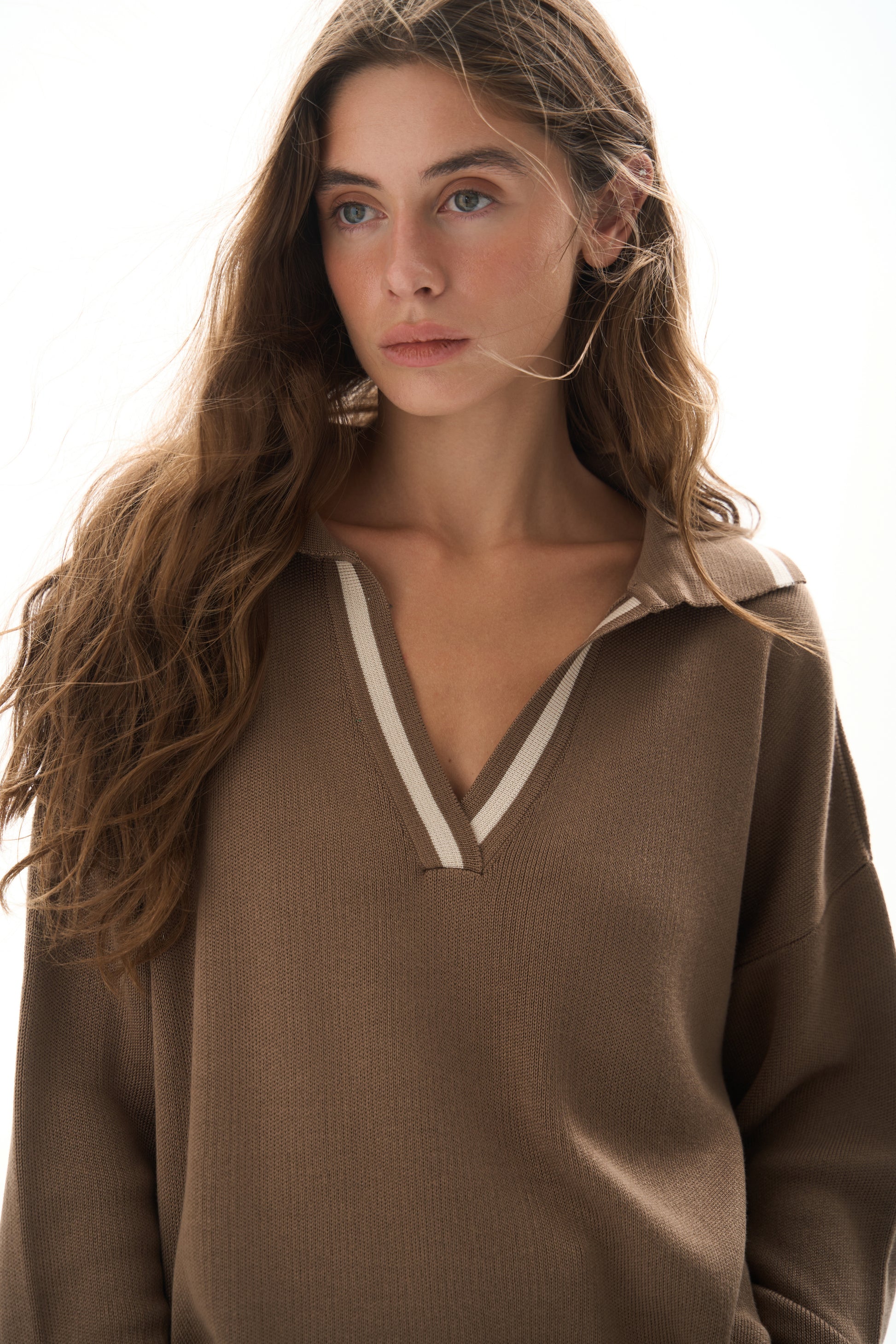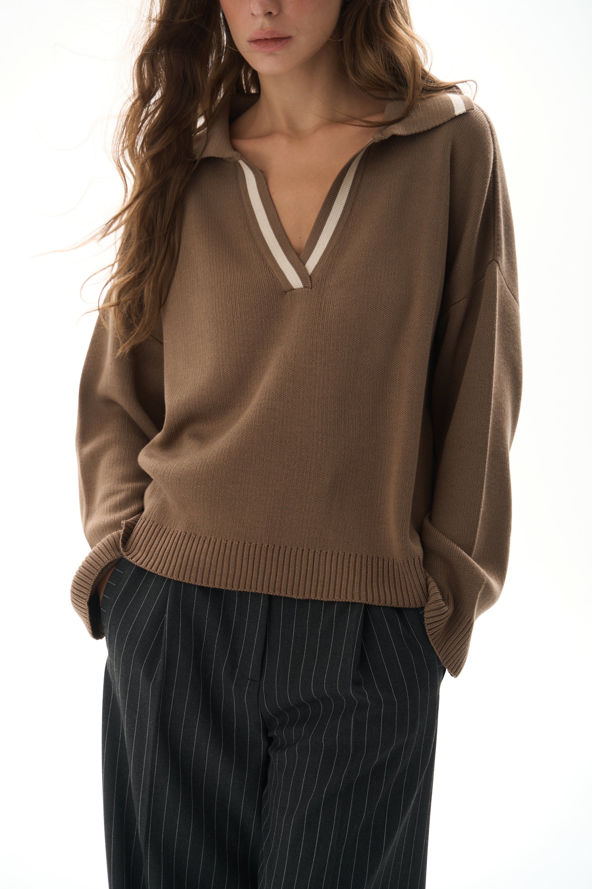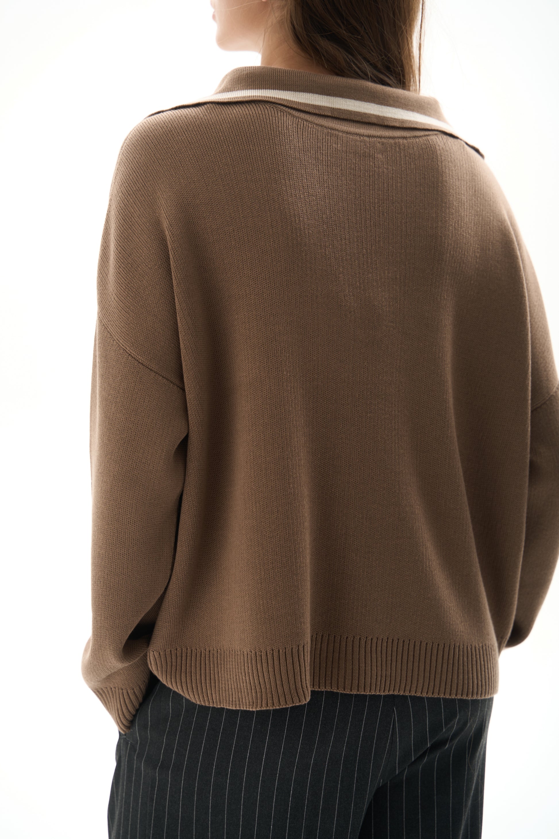 Поло вільного крою з мʼякими спущеними плечима та прямим силуетом. Виготовлений з приємної на дотик віскозної пряжі, що забезпечує комфорт та тепло.