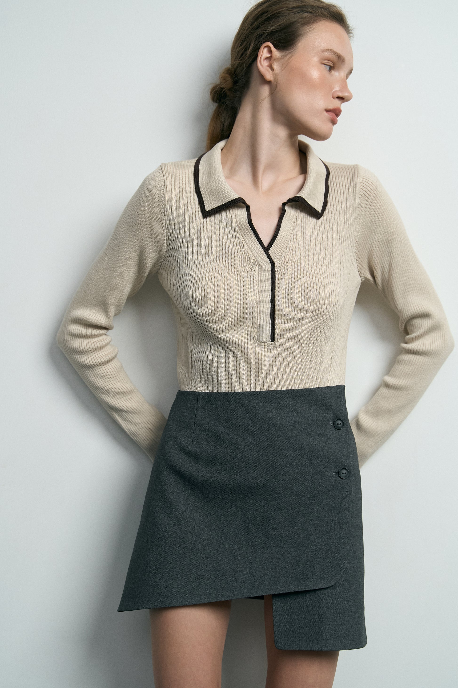 комірі. Вдало поєднується з обʼємними штанами або мініспідницею.
