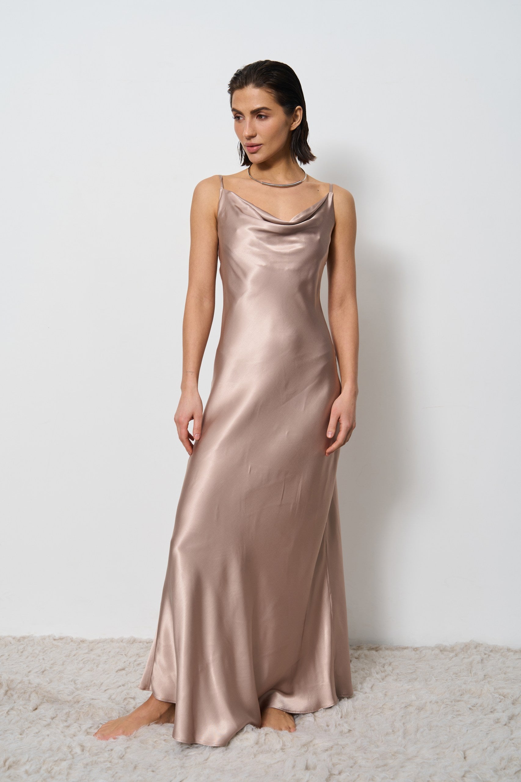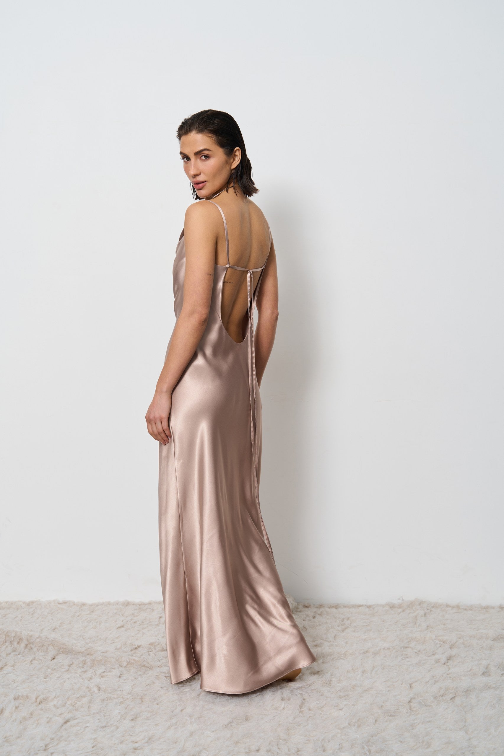 Сукня з відкритою спиною сатинова моко